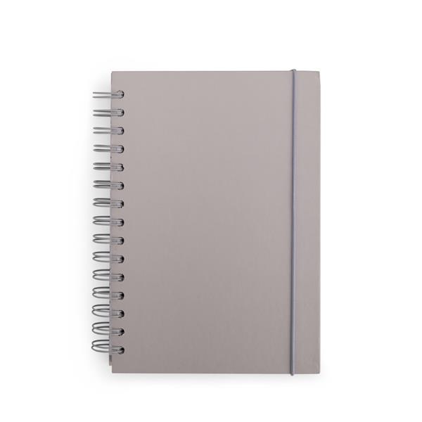 Caderno com capa dura em couchê, encadernação wire-o, marcador de páginas em fita de cetim e elástico para fechamento. Conta com aproximadamente 160 folhas brancas com pauta. Tamanho aproximado: 21,1 x 16 x 2,5cm