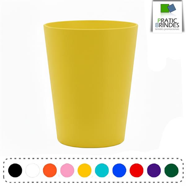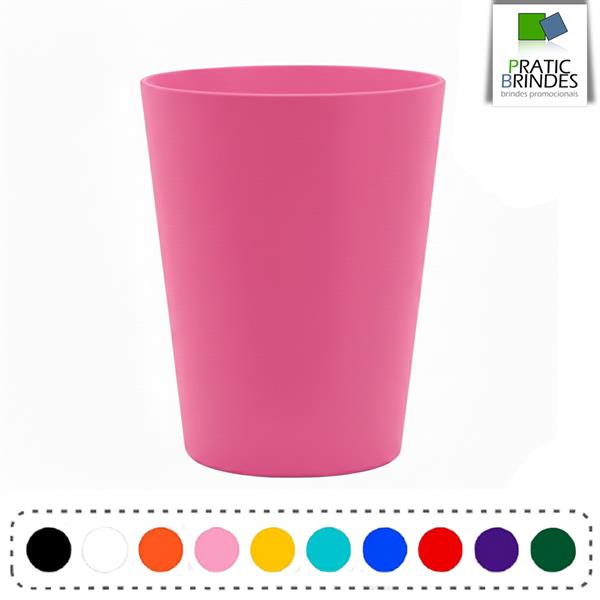 Copo de plástico poliestireno (P.S Cristal), atóxico, inodoro, produto não descartável e de alta durabilidade, modelo DRINK com a capacidade até 400ml. Personalização em Silk Screen ou Tampografia.