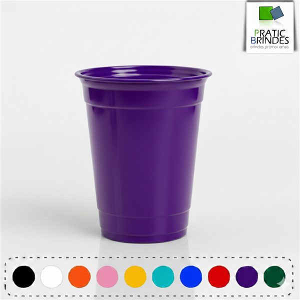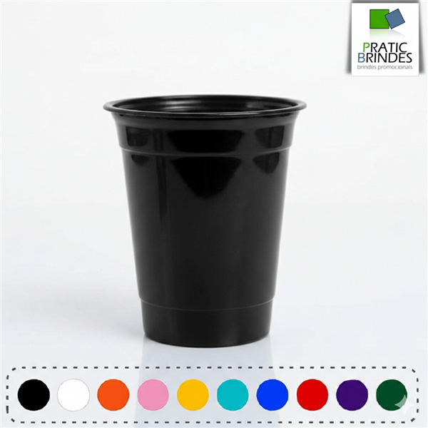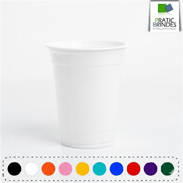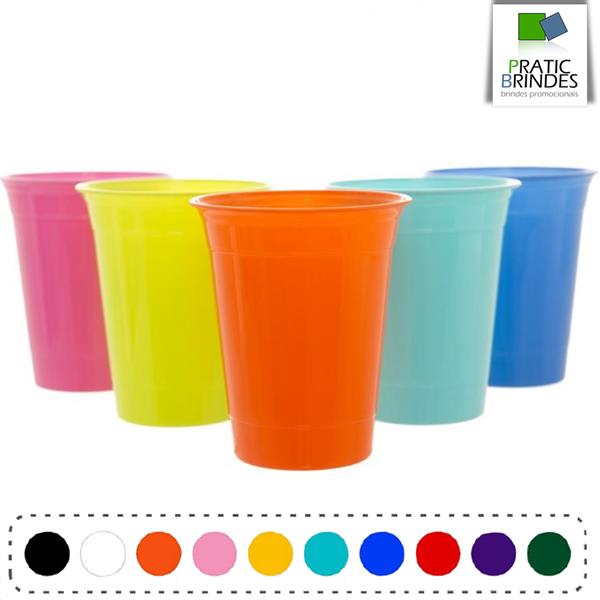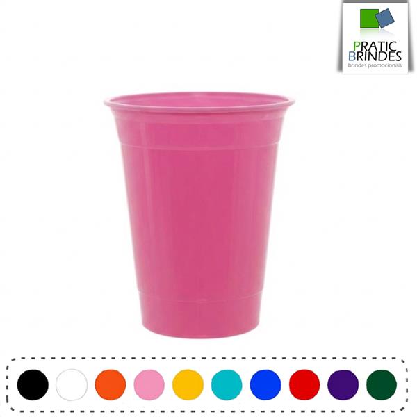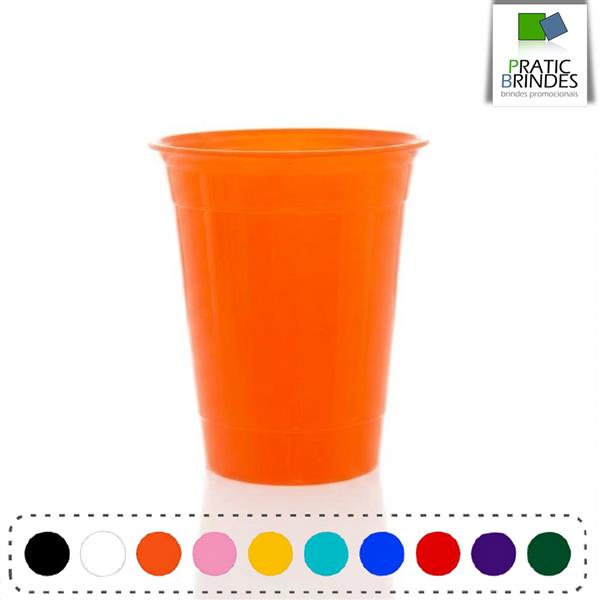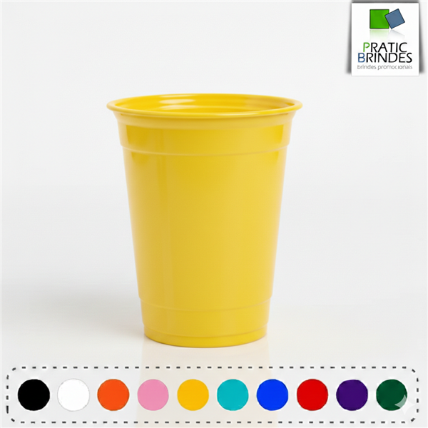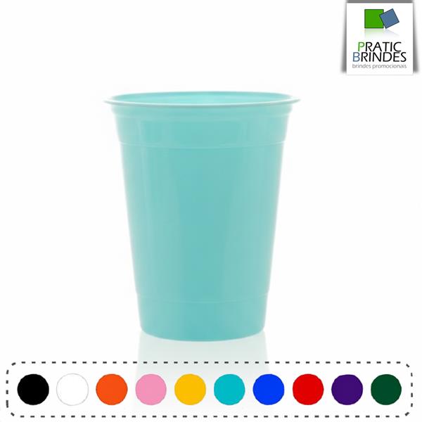 Copo de plástico polipropileno (PP), atóxico, inodoro, produto não descartável e de alta durabilidade, modelo PARTY CUP com a capacidade até 400ml.