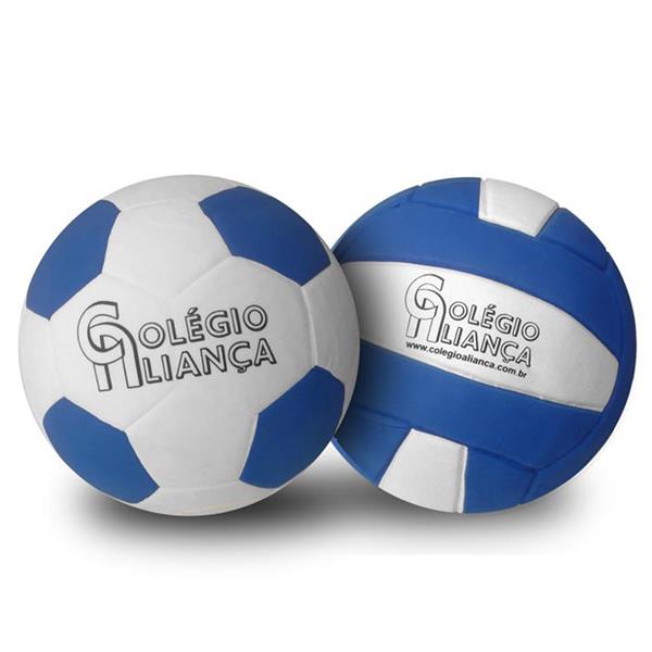 Bola recreativa confeccionada em E.V.A, nos modelos de Futebol ou Voleibol, diâmetro de 20cm aproximadamente e peso de 120gr. a 150gr.