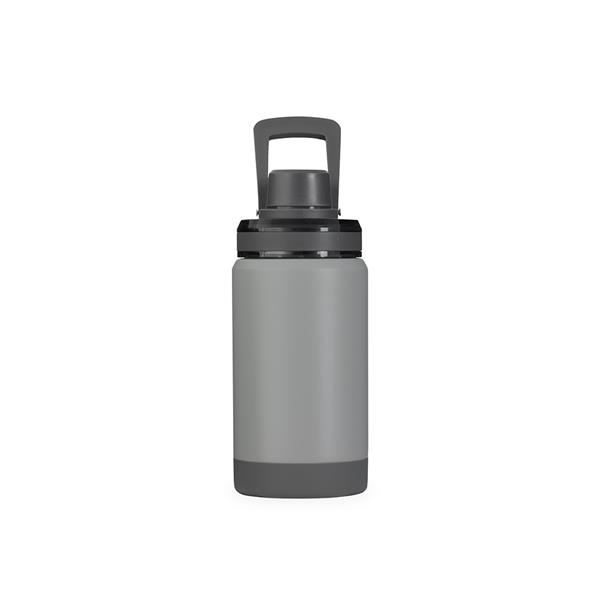 Garrafa Térmica em inox 304, pintura eletrostática e capacidade para até 400ml. Possui estrutura em parede dupla e vedação a vácuo para oferecer a conservação da temperatura de líquidos por mais tempo. Dispõe ainda de tampa rosqueável em plástico, com protetor rosqueável para o bocal e alça para transporte. Acompanha base antiderrapante removível.