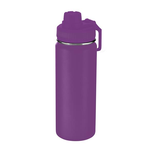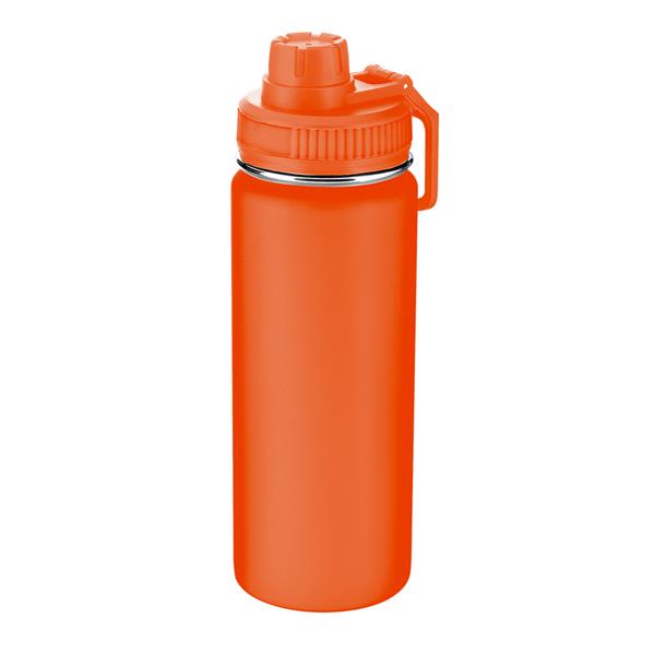 Garrafa térmica em inox com pintura eletrostática e capacidade para até 570ml. Possui estrutura de parede dupla, que permite conservar a temperatura por mais tempo, tampa rosqueável, alça de plástico e anel de silicone para vedação., tamanho aproximado 22,5 x 7,2 cm. (AxL).