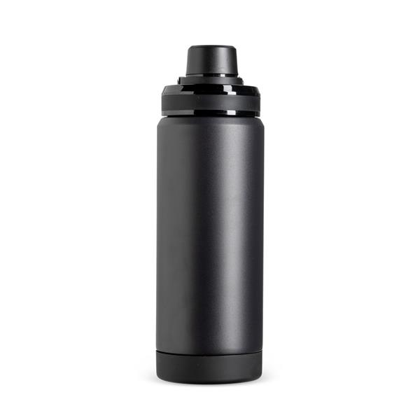 Garrafa térmica em inox 304 com capacidade máxima de até 600ml. Conta com estrutura de parede dupla e vedação a vácuo para manter a temperatura de líquidos conservada por mais tempo. Possui tampa rosqueável em plástico com protetor para o bocal e alça para transporte. Acompanha protetor antiderrapante para a base.