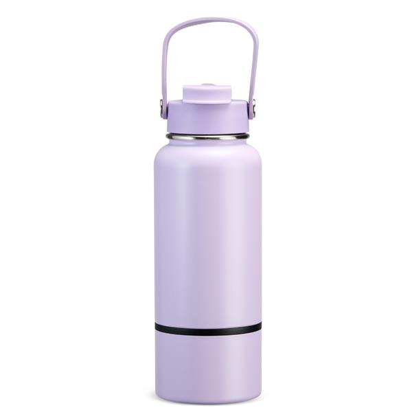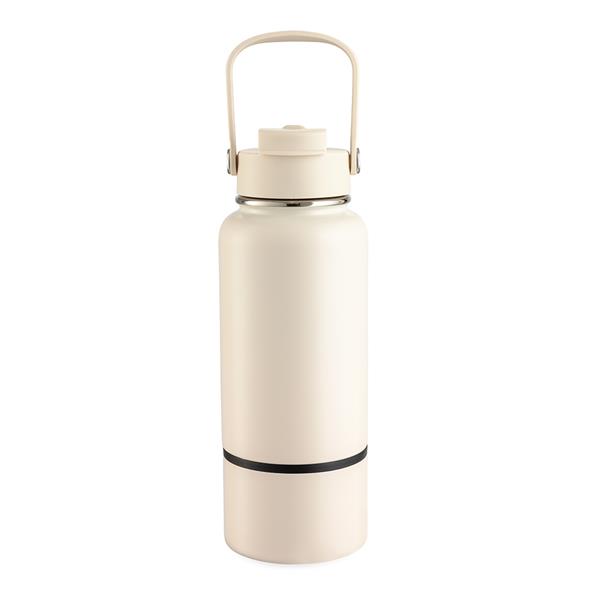 Garrafa térmica em inox com pintura eletrostática e capacidade de até 700ml. Apresenta estrutura interna de parede dupla e vedação a vácuo, o que ajuda a conservar a temperatura de líquidos por mais tempo. Conta ainda com fundo removível. Possui tampa plástica rosqueável com protetor para o bocal, bico flip, canudo interno removível e alça fixa para transporte.
