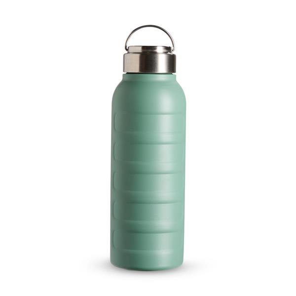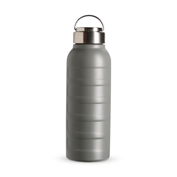 Garrafa térmica em inox com capacidade máxima de 950ml. Apresenta design ergonômico, construção com parede dupla e isolamento a vácuo, o que ajuda a conservar a temperatura de líquidos por mais tempo. Possui tampa rosqueável em inox conta com uma alça fixa para facilitar o transporte.