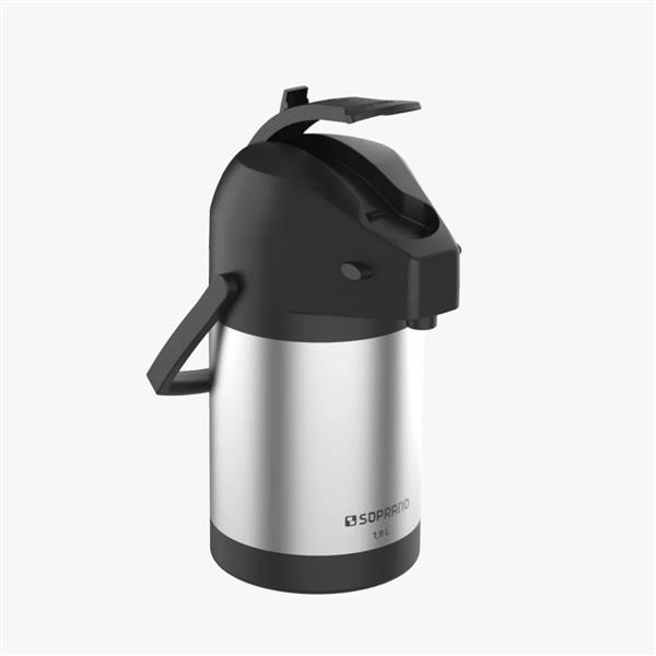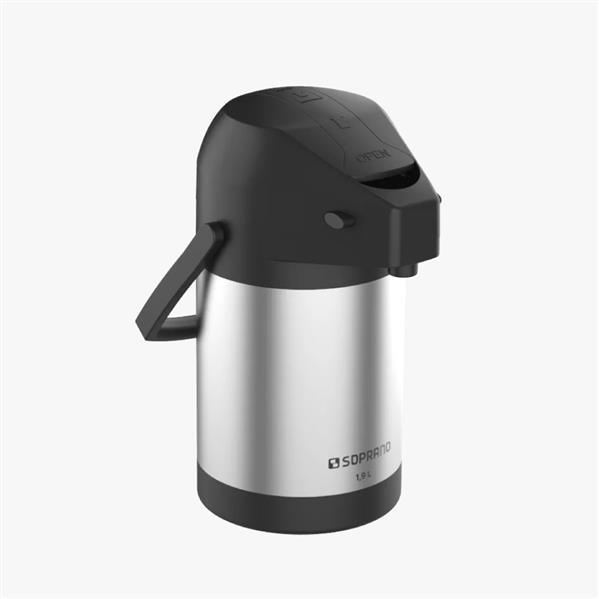 A Garrafa Térmica Excelence Soprano, com capacidade de 1,9 litros, constitui solução termicamente eficiente para conservação de bebidas, mantendo-as quentes por até oito horas e frias por até dez horas. Confeccionada em aço inoxidável com revestimento duplo e alça para transporte, apresenta acionamento por alavanca retrátil com trava de segurança, base giratória de 360 graus e estrutura de elevada durabilidade. Indicada para uso doméstico, profissional e em deslocamentos, sua ampla capacidade a torna especialmente adequada ao preparo e ao compartilhamento de chimarrão ou tereré.