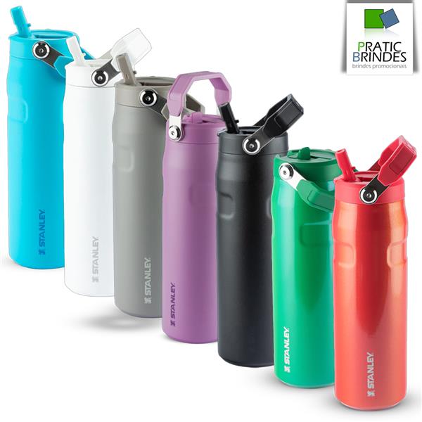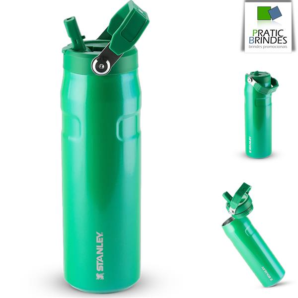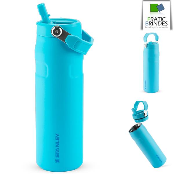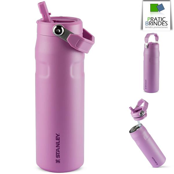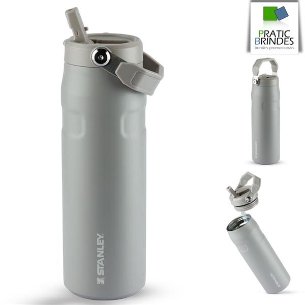 Garrafa Térmica Aerolight™ Flip Straw 710ml, praticidade e alta performance. Corpo 33% mais leve de aço inox reciclado 18/8, com canudo retrátil antivazamento, alça para transporte, canudo removível para limpeza, Ideal para o dia a dia e brindes corporativos.