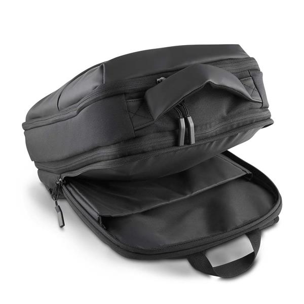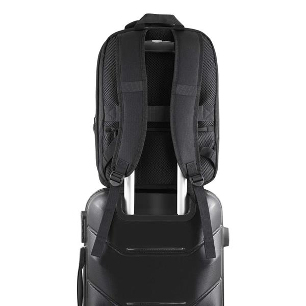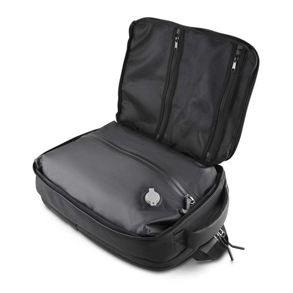 Mochila premium em poliéster 600D com detalhe em PU e interior em poliéster 210D. Conta com compartimento interno a vácuo, acompanha bomba para desinflar, expansor com zíper, compartimento frontal com zíper, compartimento para notebook de até 15,6”, compartimento com zíper nas costas, engate para mala de viagem e alças de mão e ombro acolchoadas. Volume: 26L (Com Expansor) - Volume: 18,5L (Sem Expansor). Tamanho aproximado: 44x31x11cm (AxLxP)
