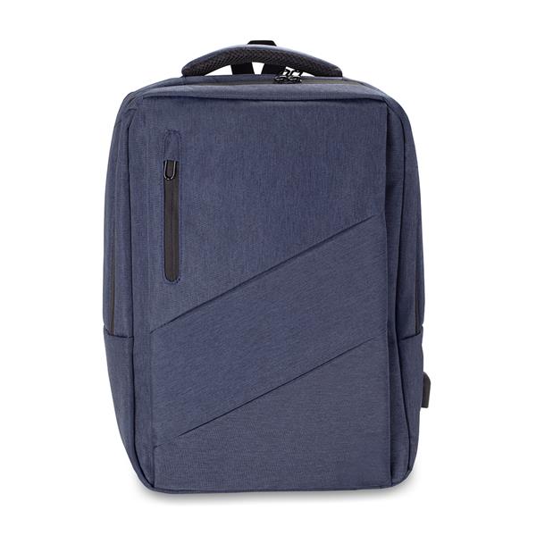 Mochila para notebook de até 15,6” com expansor, confeccionada em tecido externo de poliéster 600D e tecido interno de poliéster 210D. Possui conector USB na lateral, compartimento frontal com zíper e compartimento principal com divisórias para pequenos objetos, chaves, tablet e notebook de até 15,6”. Conta ainda com engate para mala de viagem, além de alças de mão e de ombro acolchoadas.