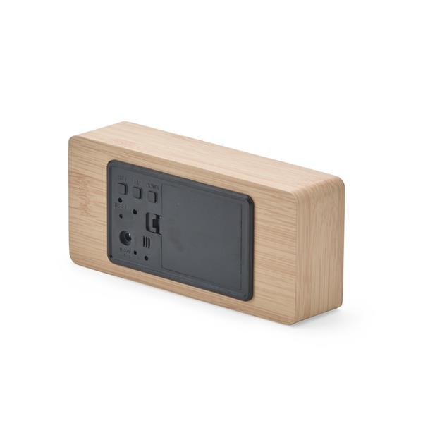 Este despertador em MDF combina o design requintado de seu corpo com a tecnologia de um painel LED. Ele exibe hora, data e temperatura ambiente, e permite programar até três alarmes diferentes com horários e frequências personalizadas. Oferece versatilidade na alimentação, funcionando com 4 pilhas AAA (não inclusas) ou via cabo USB de 5V (incluído). Tamanho aproximado: 7 x 15cm